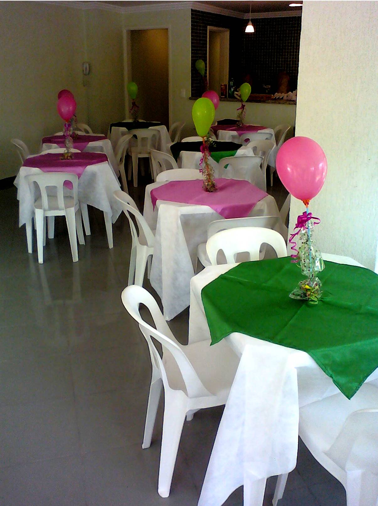 Decoramos o salão de acordo com o seu gosto e o seu tipo de festa. Deixamos tudo organizado e em seus apropriados lugares. Decoramos de acordo com o tamanho do salão.